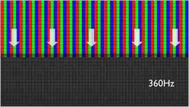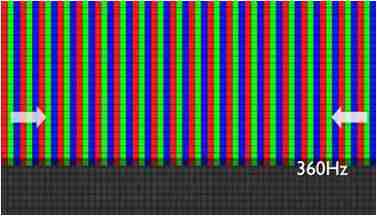 传统液晶驱动是从左到右单向进行,,,在画面更新速度愈来越愈快的情况下,,位于驱动线路末端的右下角区域,,,画素的闸极来不及在短时间内获得足够电压,,,无法显示出正确的颜色资讯。。。。 |